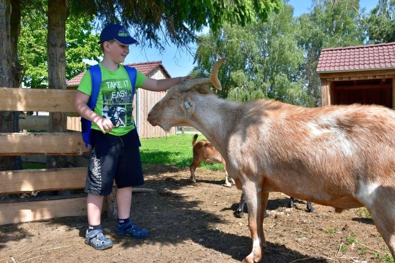 Ve čtvrtek 15. června navštívila naše 4. A školní statek Střední zemědělské a veterinární školy v Lanškrouně. Pro všechny děti to byl neobyčejně zajímavý zážitek. Začínal v teletníku hlazením nejmenších telátek a pokračoval v kravíně. Bude se to zdát zvláštní, ale některé děti tak poprvé uviděly kravičky z blízka, hlavně výstavní šampiónku Popelku, která vyhrála v Brně na výstavě první cenu. Prohlídka pokračovala obdivováním jezdeckých koní ve školním hřebčíně, dále odpočinkem ve fantastickém arboretu s jezírkem, kde děti posvačily. Také si mohly pochovat nejmenší jehňátka a kůzlátka. Zjistily, jak vypadá drůbež, hlavně krocani a křepelky. Celý výlet zakončily exkurzí školní mlékárny a doslova vykoupením mléčných výrobků, které v ní studenti školy vyrábí.